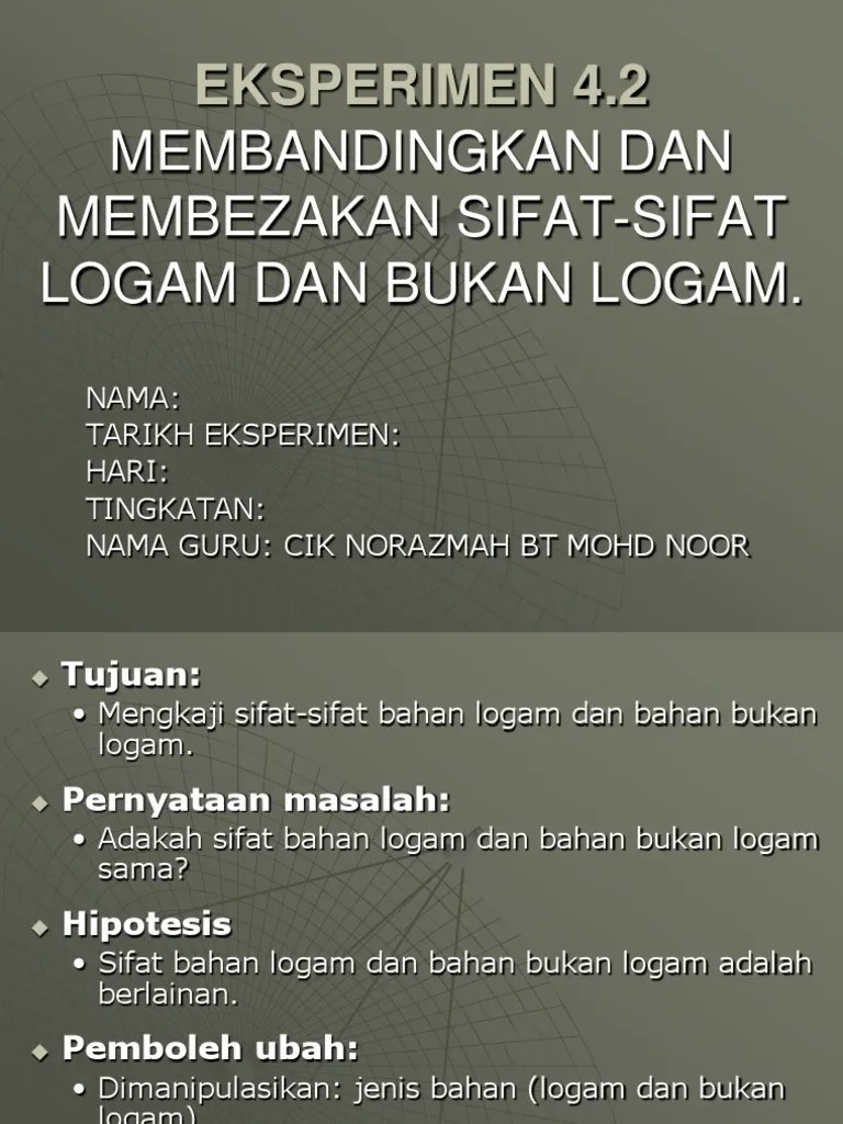 Eksperimen 4.2 Kimia Tingkatan 4 / Eksperimen 4 2 Membandingkan Dan Membezakan Sifat Sifat Logam Dan Bukan Logam Pdf